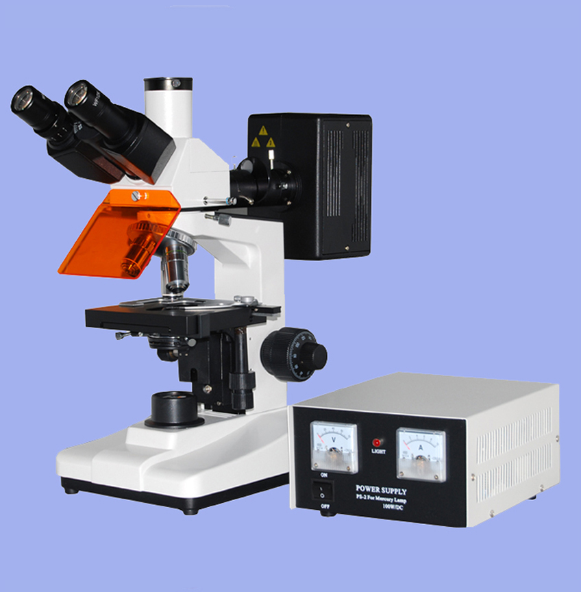 ▲  透射照明采用6V 20W鹵素?zé)?,亮度可調(diào);熒光落射照明采用100W高壓汞燈,外置電源箱.