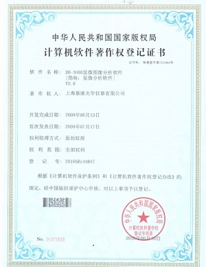 • 顯微圖像分析軟件著作權證書