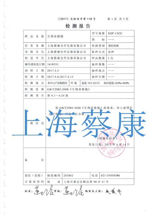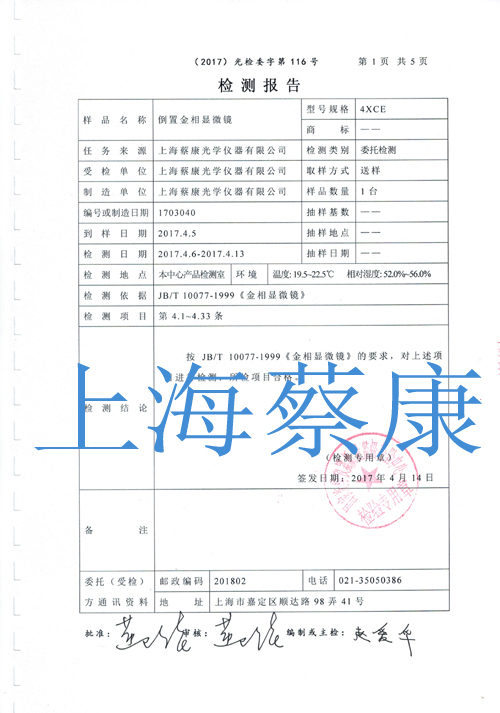 • 生物顯微鏡國家光學檢驗中心檢測報告