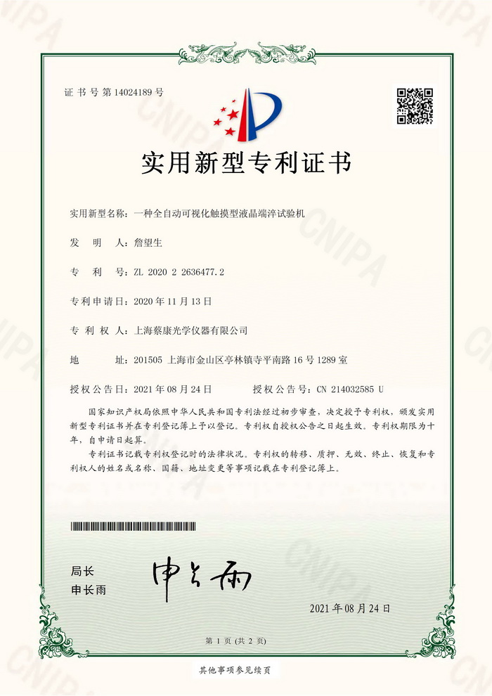 • 液晶端淬試驗機實用新型專利